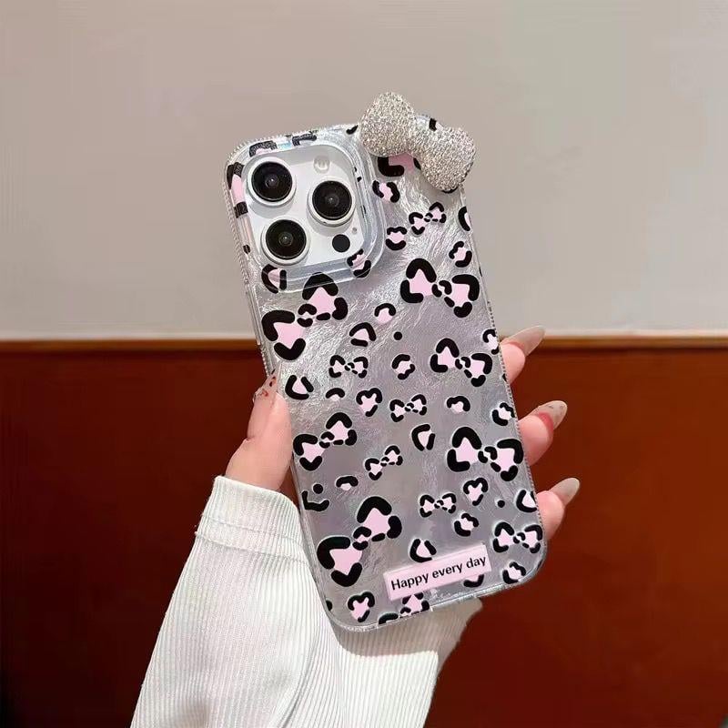 Leopar Desenli Taşlı Fiyonklu Telefon Kılıfı Giri Renkli