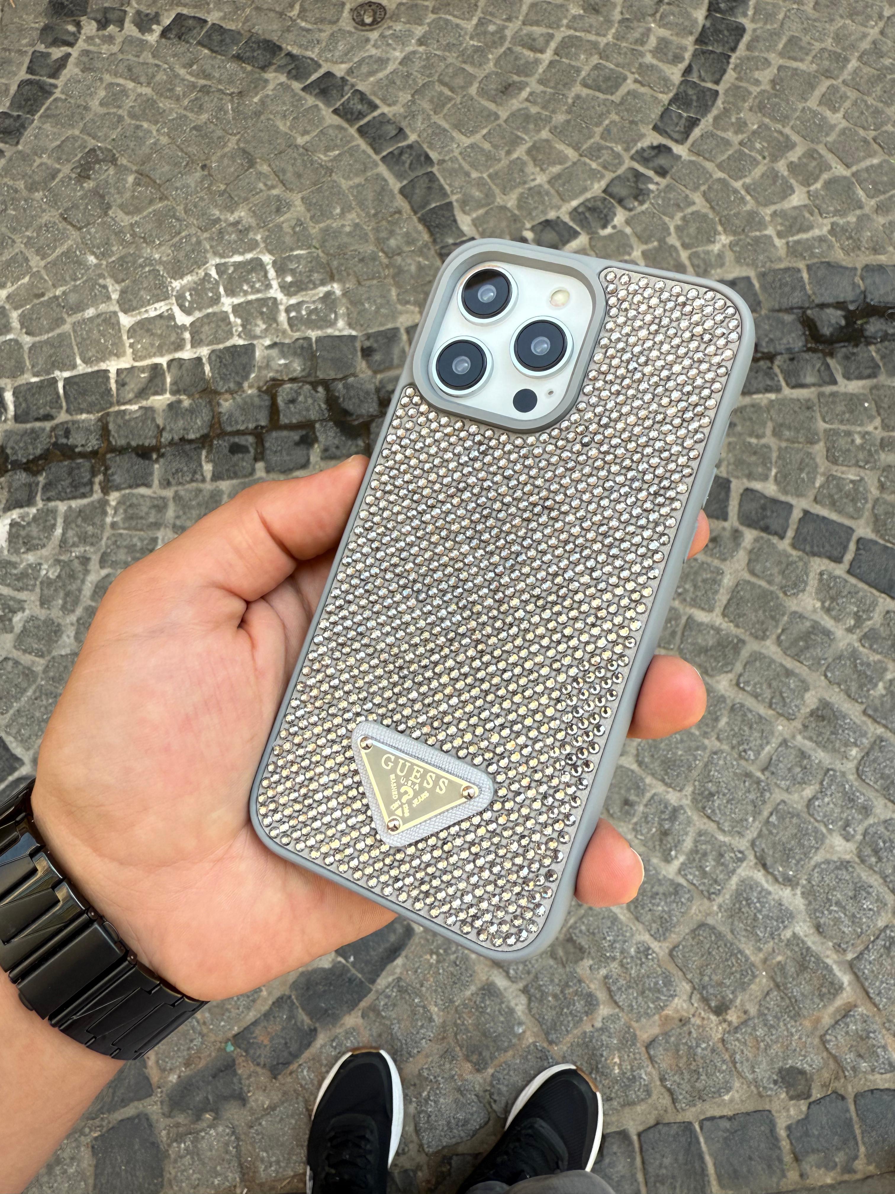 Luxury Taşlı Silikon Telefon Kılıfı Gri renk Renkli