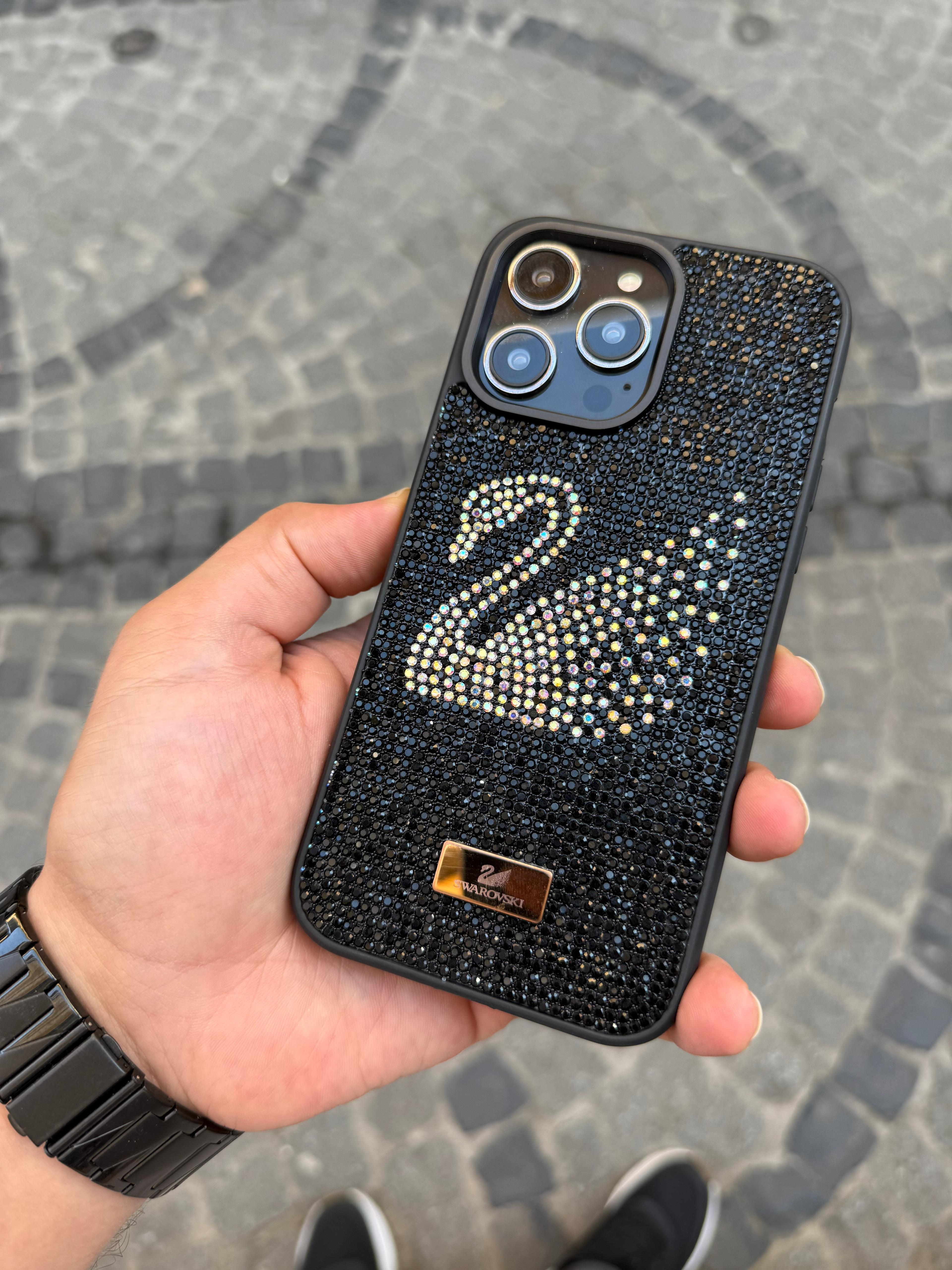 Swaroski TaşlıTelefon Kılıfı Siyah Renk