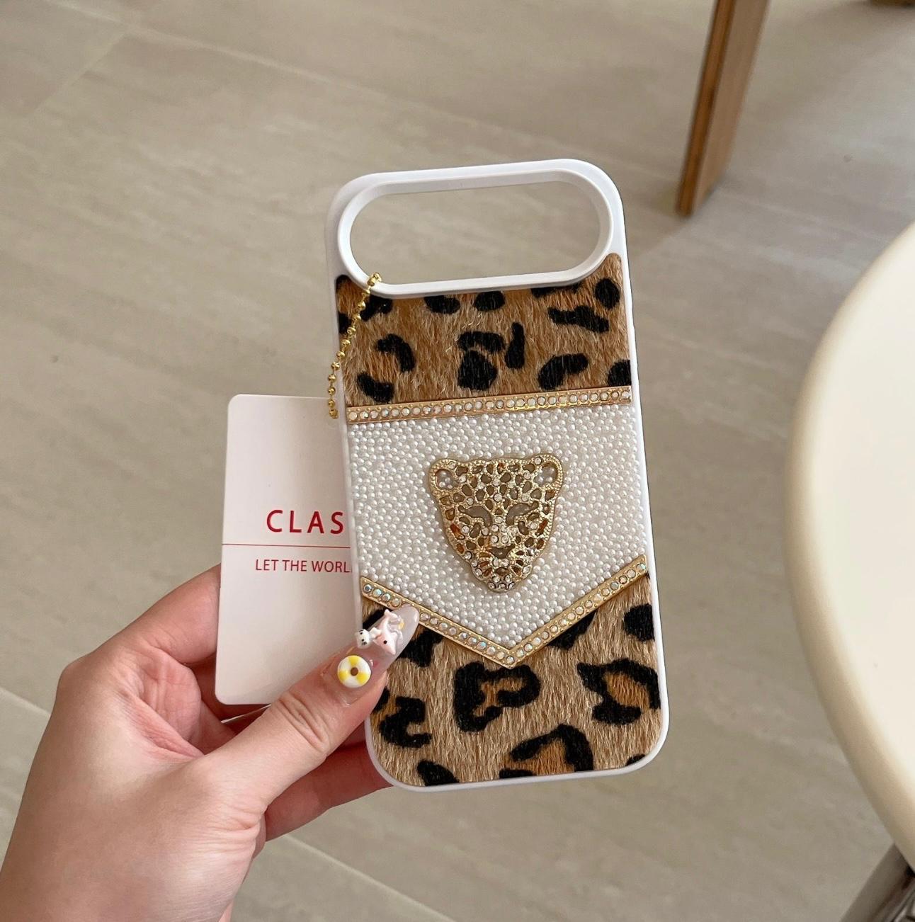 Tüylü Beyaz Renk Leopar Diamond Luxury Kılıflar