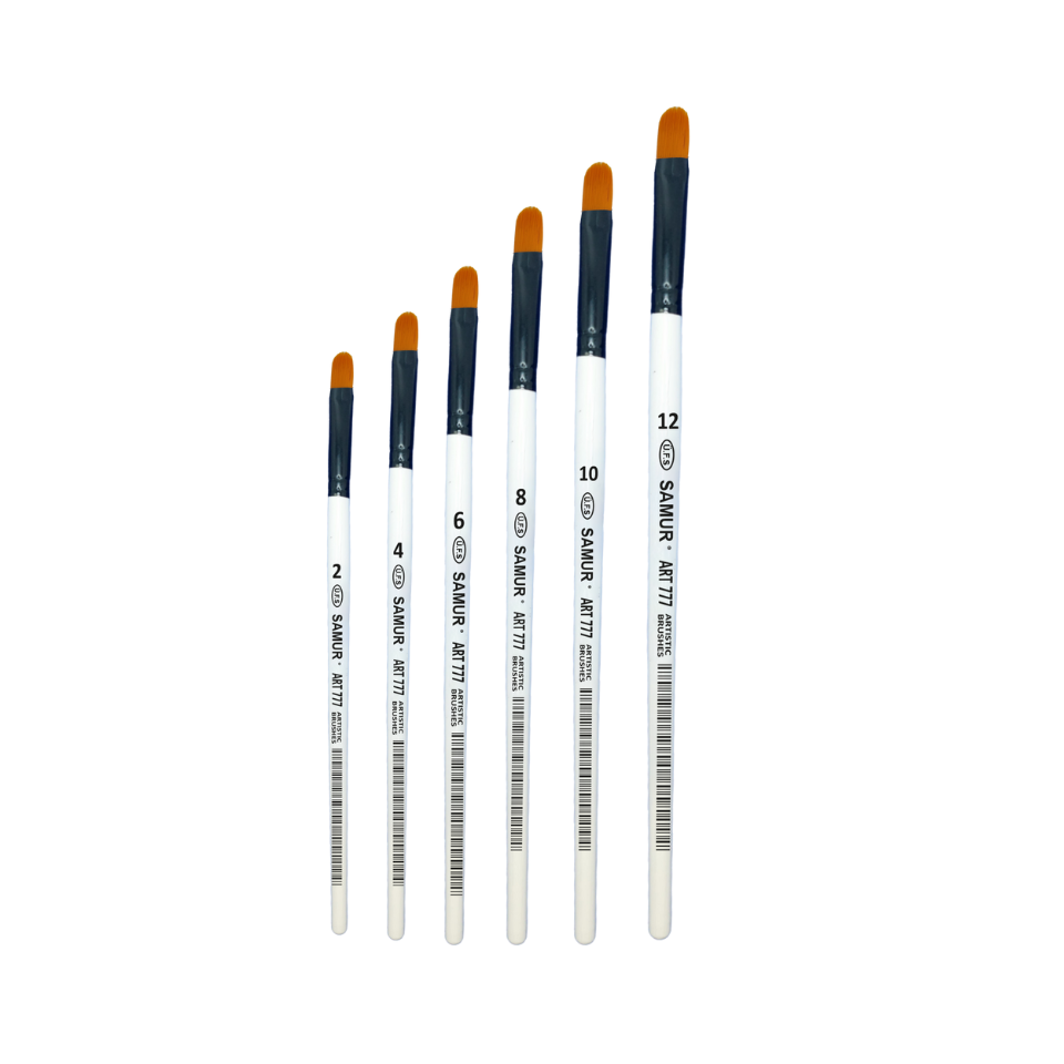 Samur 6'lı Kedi Dili Fırça Seti, en çok tercih edilen 2, 4, 6, 8, 10 ve 12 numaralı sentetik fırçalardan oluşur. Kedi dili formu, hem yüzey kaplamada hem de geçişli boyamalarda dengeli ve kontrollü sonuçlar elde etmeyi sağlar.
