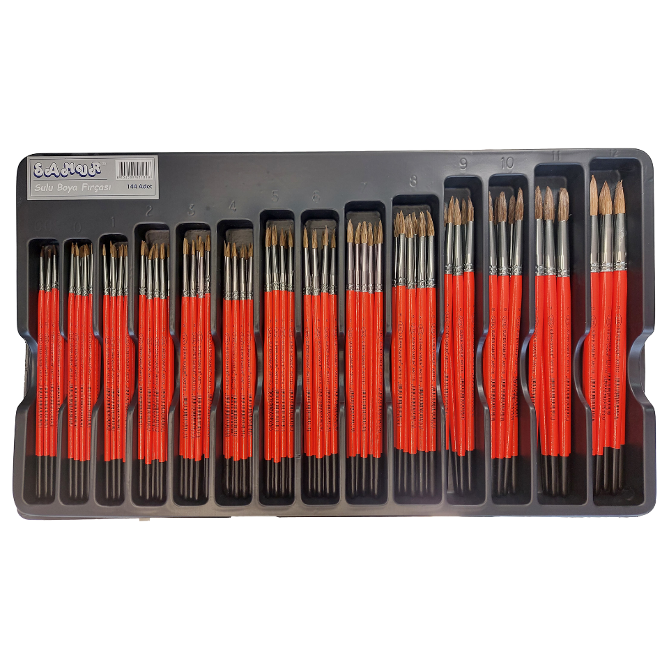 Süper Samur 144'lü fırça seti, Sulu ve Akrilik boya çalışmaları için özel geliştirilmiş kaliteli fırçalardan oluşur. Plastik standı sayesinde kırtasiyelerde ve sanat atölyelerinde düzenli sergileme sağlar. Toptan satış için ideal bir çözümdür.