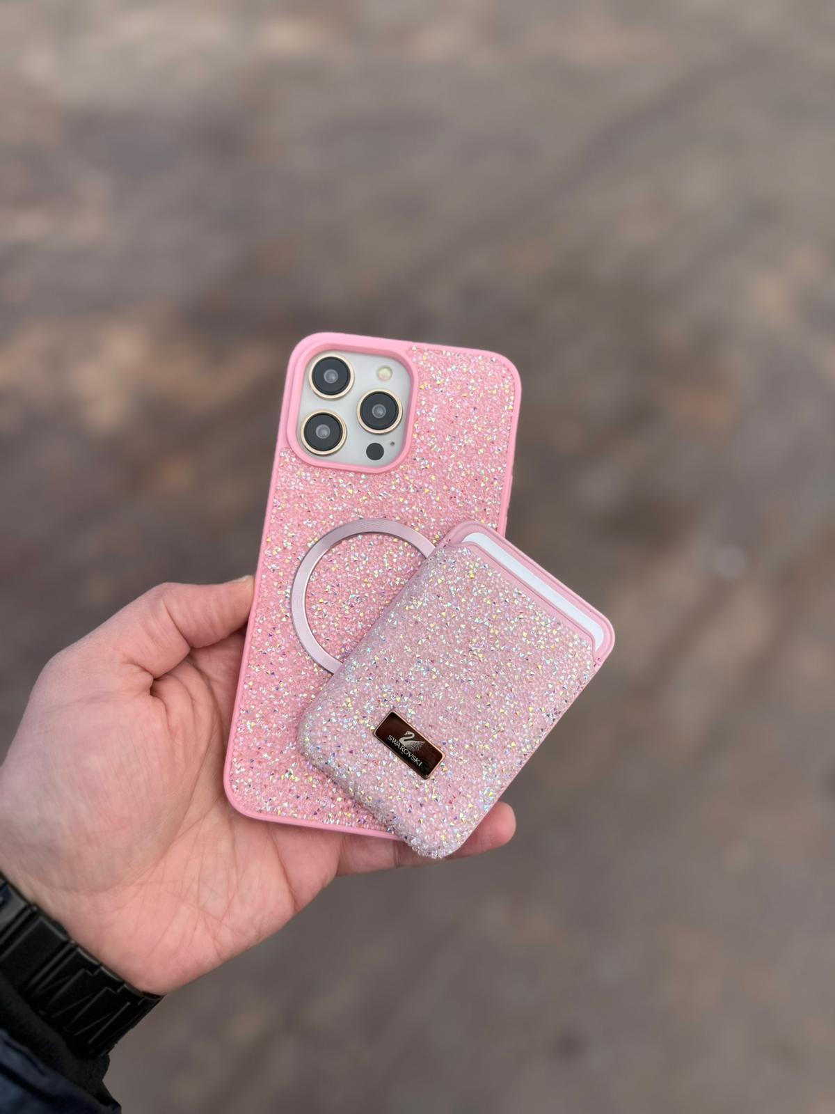 Swaroski Taşlı Magsafe Özelikli Kartlıklı Pembe Telefon Kılıfı