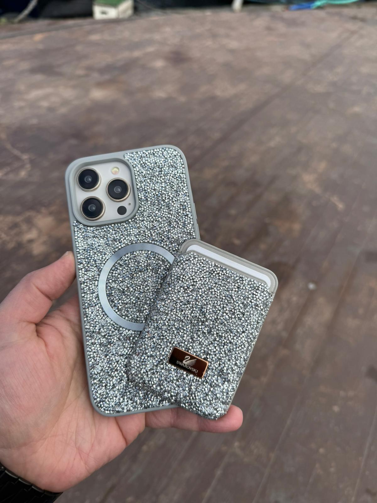 Swaroski Taşlı Magsafe Özelikli Kartlıklı SİLVER renk Telefon Kılıfı
